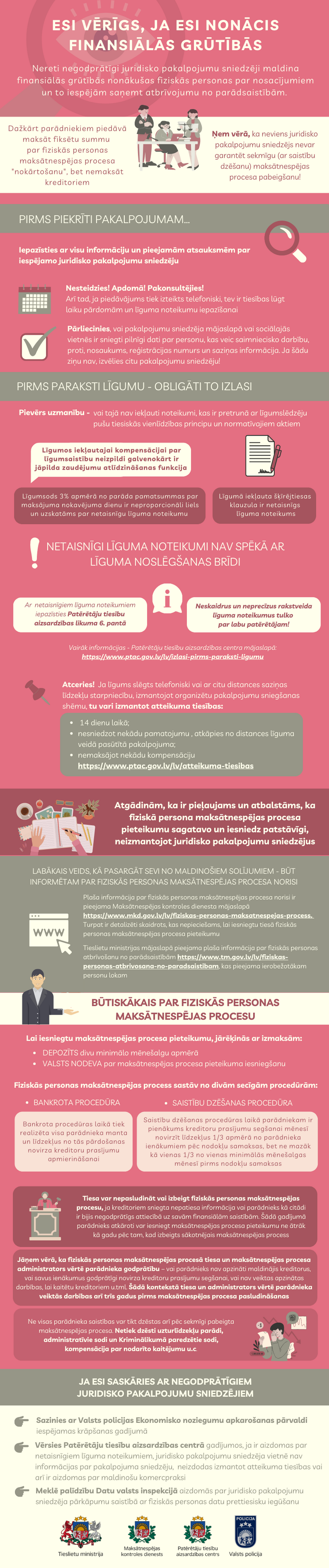 Savukārt Tieslietu ministrijas tīmekļvietnē pieejama plaša informācija par fiziskās personas atbrīvošanu no parādsaistībām, kas pieejama ierobežotākam personu lokam.
