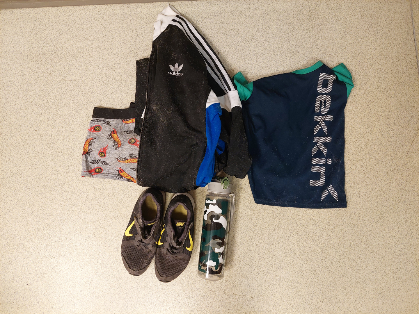 14.10.2025. Liepājā, pludmalē atrasti bērna “Nike” sporta apavi, apģērbs un ūdens pudele.
