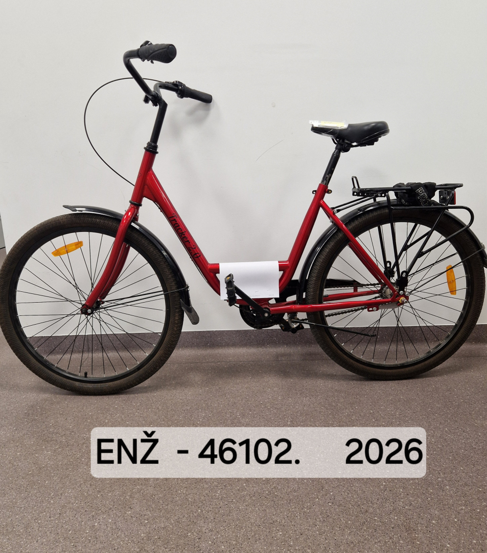 10.03.2026. Mūkusalas ielā 3, Rīgā, tika atrasts sarkanas krāsas divritenis ar uzrakstu Tracker 2.0, nr.MD2120558.