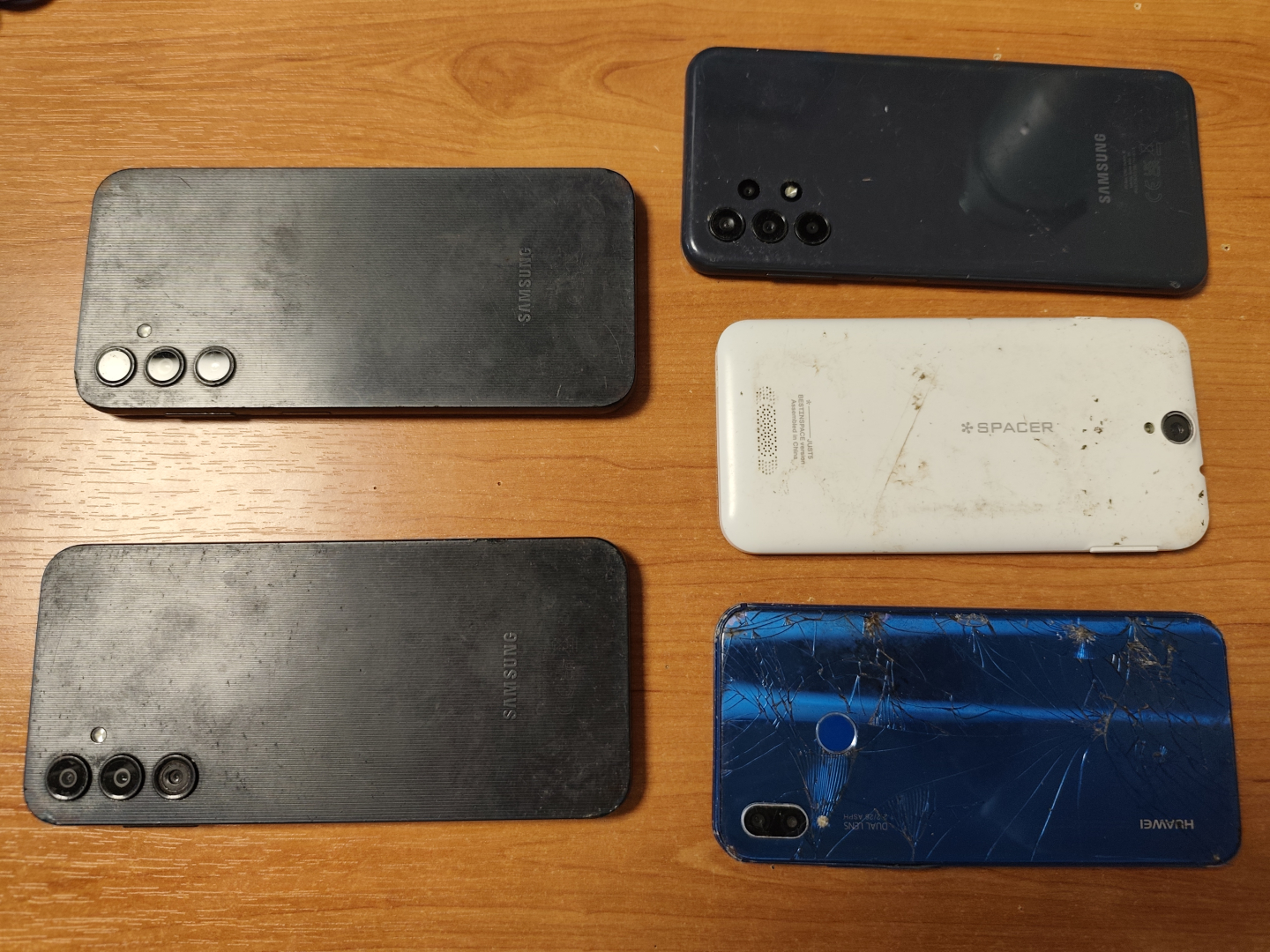 2025. gada 24. septembrī, Valmierā, Garā ielā 4, mobilie telefoni Spacer, Samsung, Huawei.