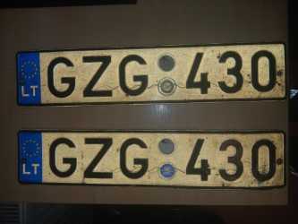 Atrastas divas Lietuvas automašīnu v/n zīmes GZG 430.