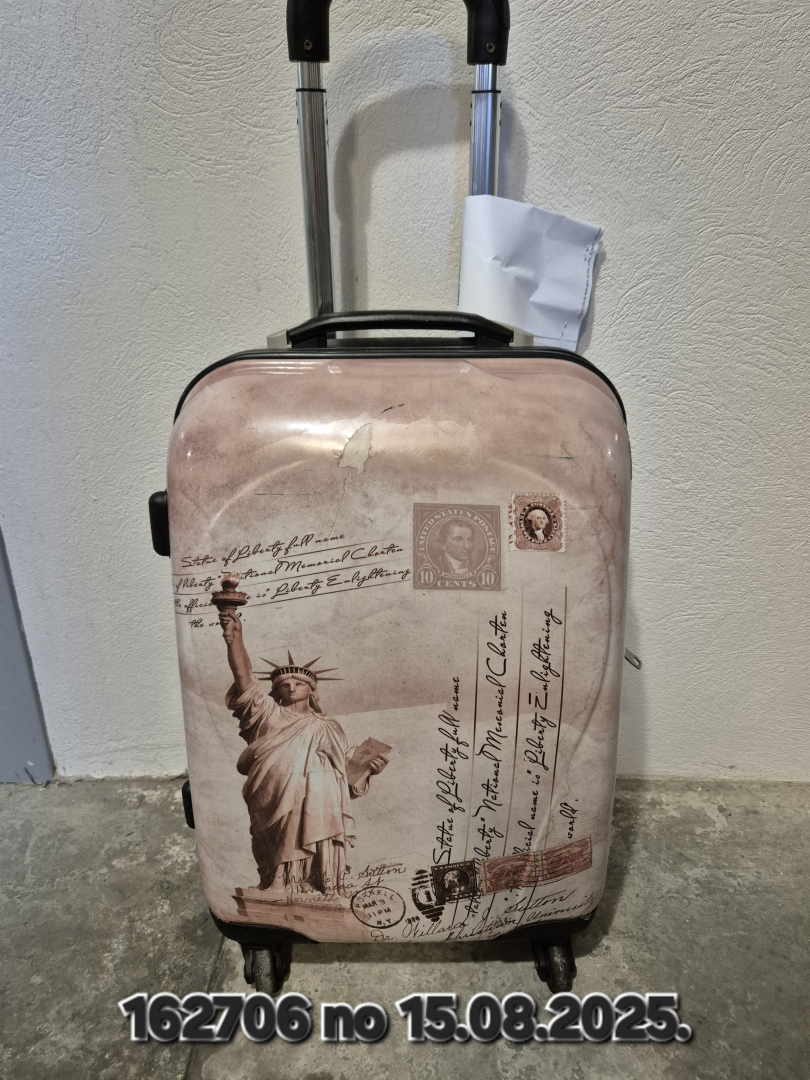 Čemodāns tika atrasts 15.08.2025. Katlakalna ielā 10, Rīgā.