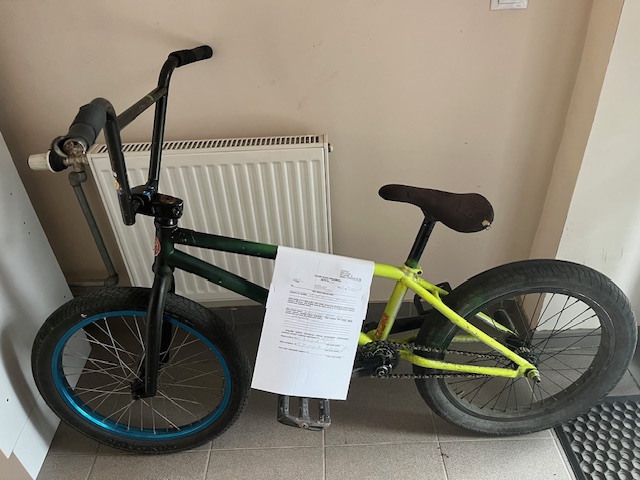 14.08.2025. plkst. 21:27 Cēsīs, Jāņa Poruka ielā 16., krūmos atrasts zaļš BMX velosipēds.