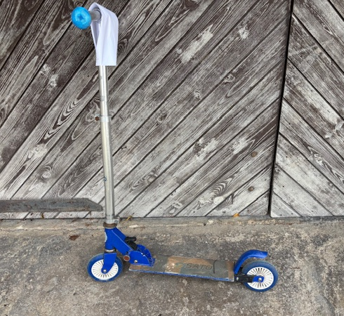 01.08.2025 Limbažos, Jūras ielā 35, krūmos atrasts zaļš skrejritenis Comet.