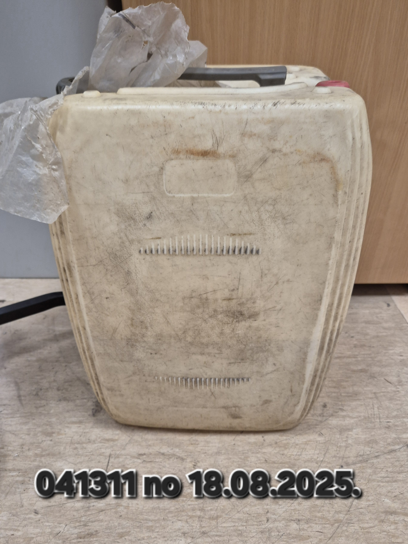 Plastmasas kanna tika atrasta 18.08.2025. Krišjāņa Valdemāra ielā 3, Rīgā.
